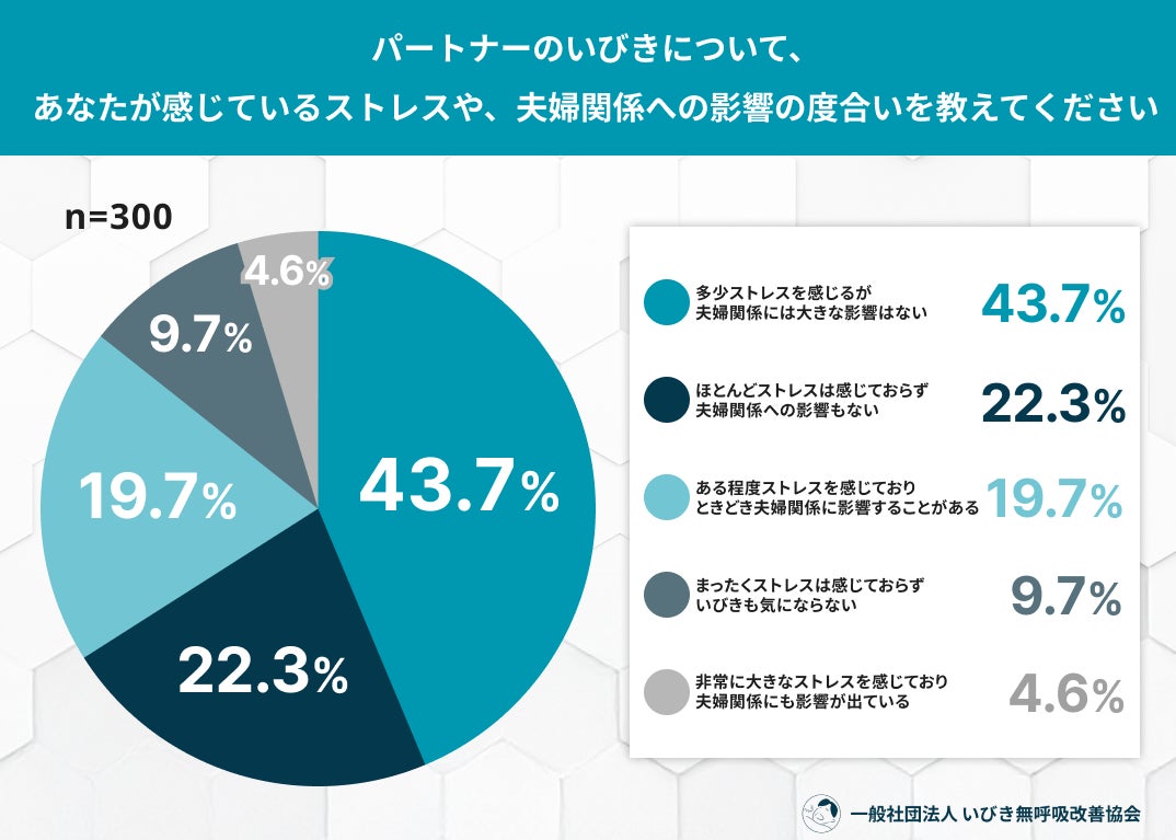 Q2. パートナーのいびきについて、あなたが感じているストレスや、夫婦関係への影響の度合いを教えてください