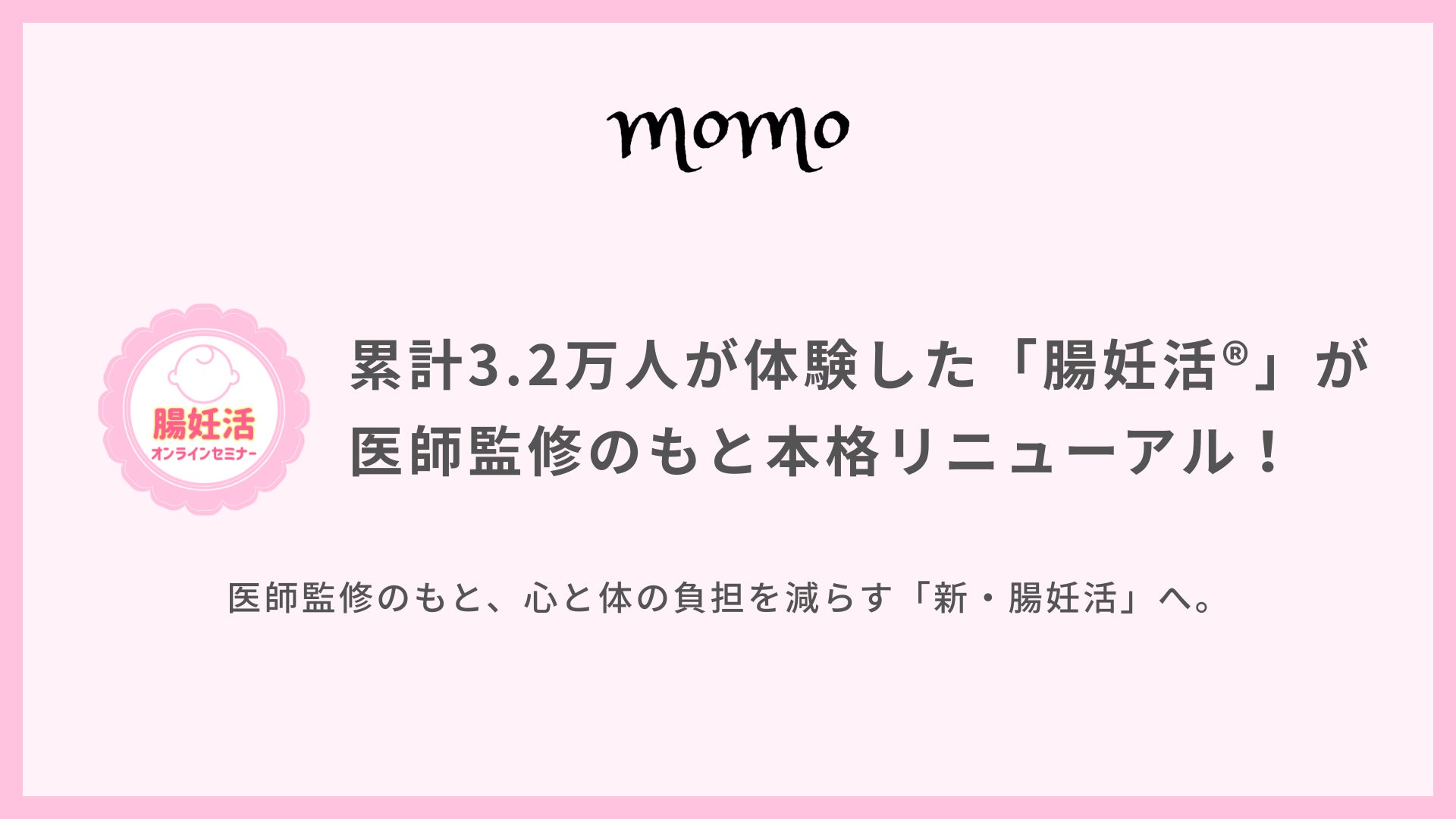 「腸妊活®」を提供する株式会社momo(東京都豊島区)および一般社団法人ウーマンフードヘルス協会(沖縄県中頭郡)は、提供する妊活サポートプログラムを、医師監修のもと全面的にリニューアルいたします。累計LINE登録者数32,000名超※1の実績を持つ本プログラムに医学的知見を取り入れ、「もっと無理なく、もっと前向きに」取り組める内容へアップデート。これを記念し、医学的視点から腸と妊活の関係を紐解く「リニューアル記念 特別オンラインセミナー」を無料開催いたします。※1:2025年11月現在