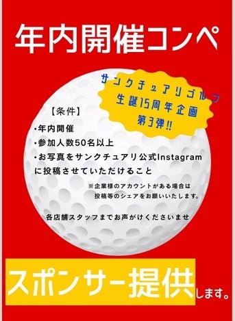 初心者専用インドアゴルフスクール「サンクチュアリ」を運営する株式会社サンクチュアリゴルフ(本社:東京都港区六本木/代表:羽生淳一)は、2025年よりスタートした創業15周年記念企画の第3弾として会員様が参加する50名以上のゴルフコンペに対し【約10万円相当】の協賛を行う新プログラムを開始いたします。