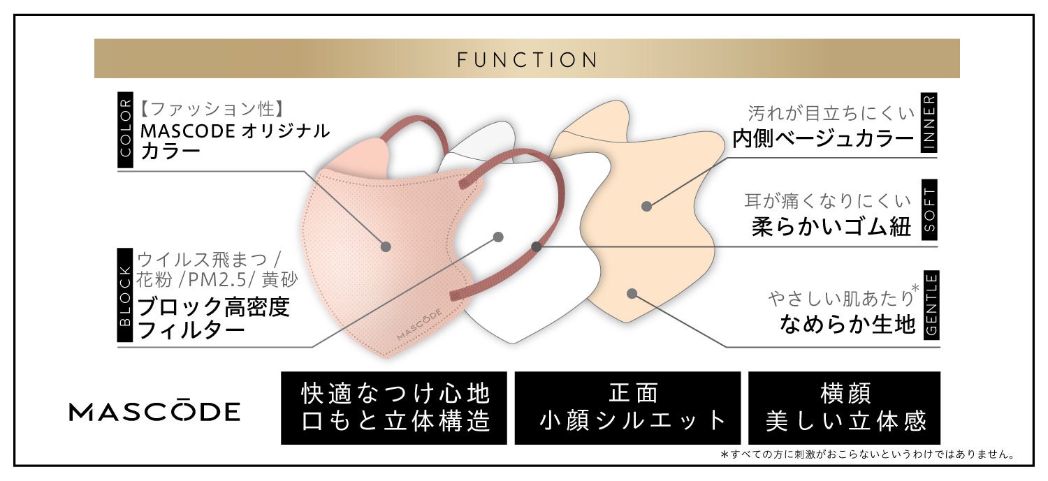 ファッション性と機能性を両立させた「MASCODE(マスコード)」は、「理想の『美しさ』を表現できるドレスコードブランド」として、TPOや服装、その日の気分、なりたい印象に合わせて選べる衛生マスクとアイライナーを取り扱っているブランドです。