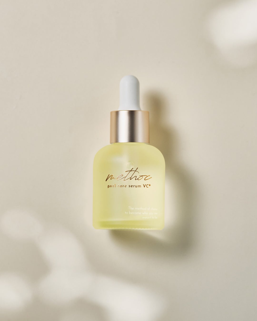 ブランド第一弾アイテムとなる「メソック ピールケアセラムVC」は、3種のピールケア成分※2を20%※1以上配合。ザラつき、毛穴※4、角質、くすみ※4、皮脂などが気になる肌をケアします。また、浸透力※5にこだわった3種のビタミンC誘導体※3を配合。肌をすこやかに保ち、透明感※6のある肌印象をサポートします。
