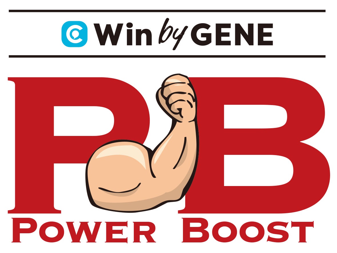 「Win by GENE」によって、パワーリフティングに必要な“POWER”を高め続けることを込めたロゴです。