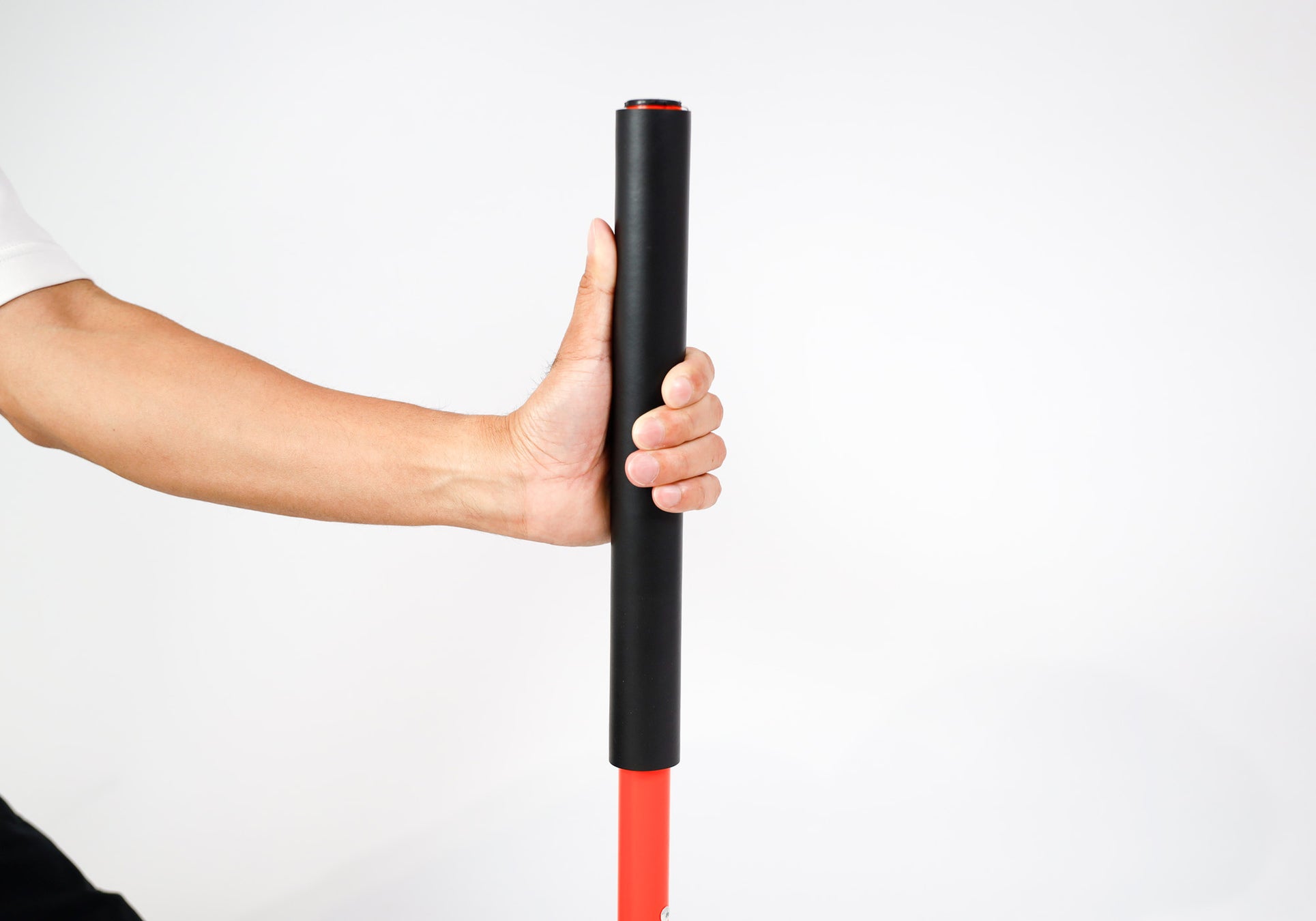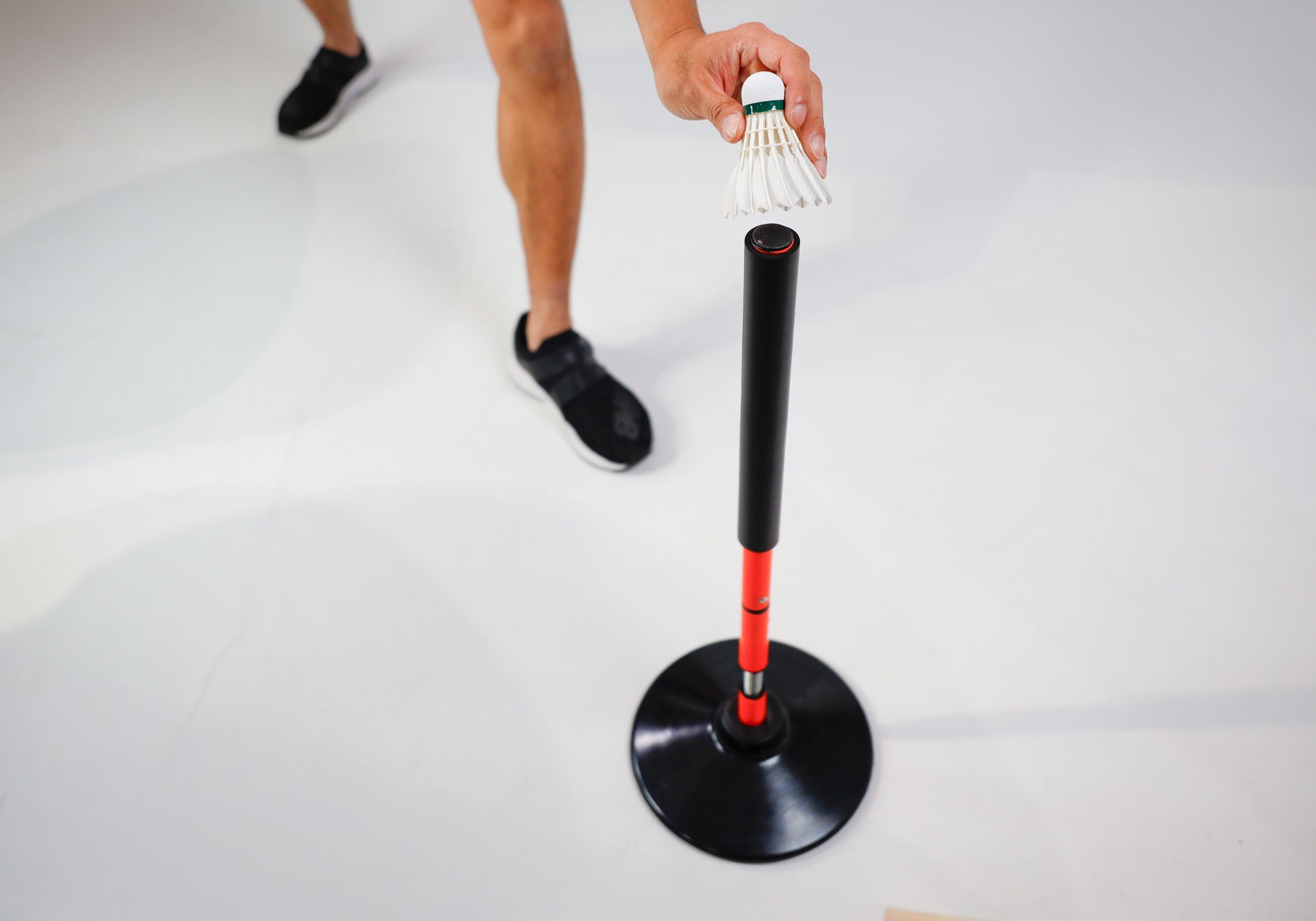 硬いゴム素材で作られた土台のため、重心がしっかりと安定し、屋内外どちらも使用可能。踏んでも割れず安心してご使用いただけます。一番稼働域のある先端部分には、厚さ4mmのウレタンフォームが施されており、反動で跳ね返ってきたポールが接触しても衝撃を吸収し、身体を保護します。