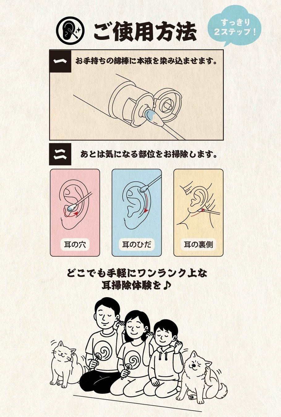 耳まわりのお掃除や、お風呂上がりのケアに!