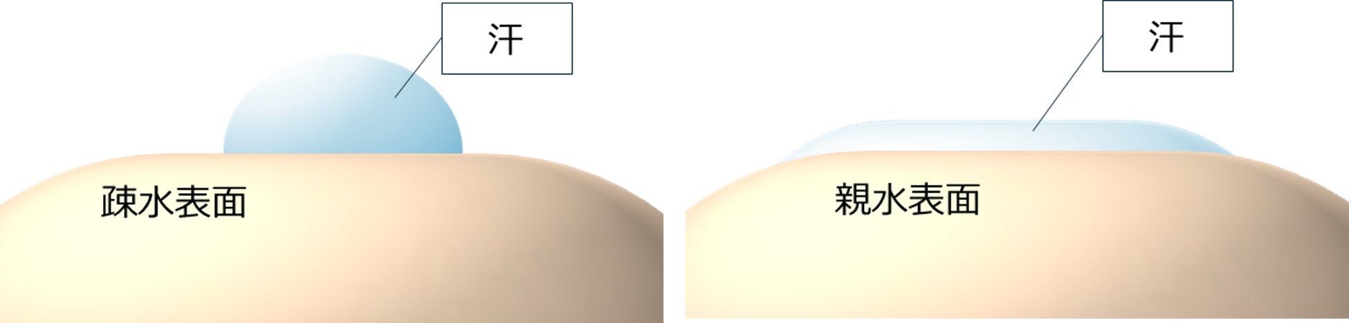図1. 疎水表面、親水表面における汗の様子(イメージ)