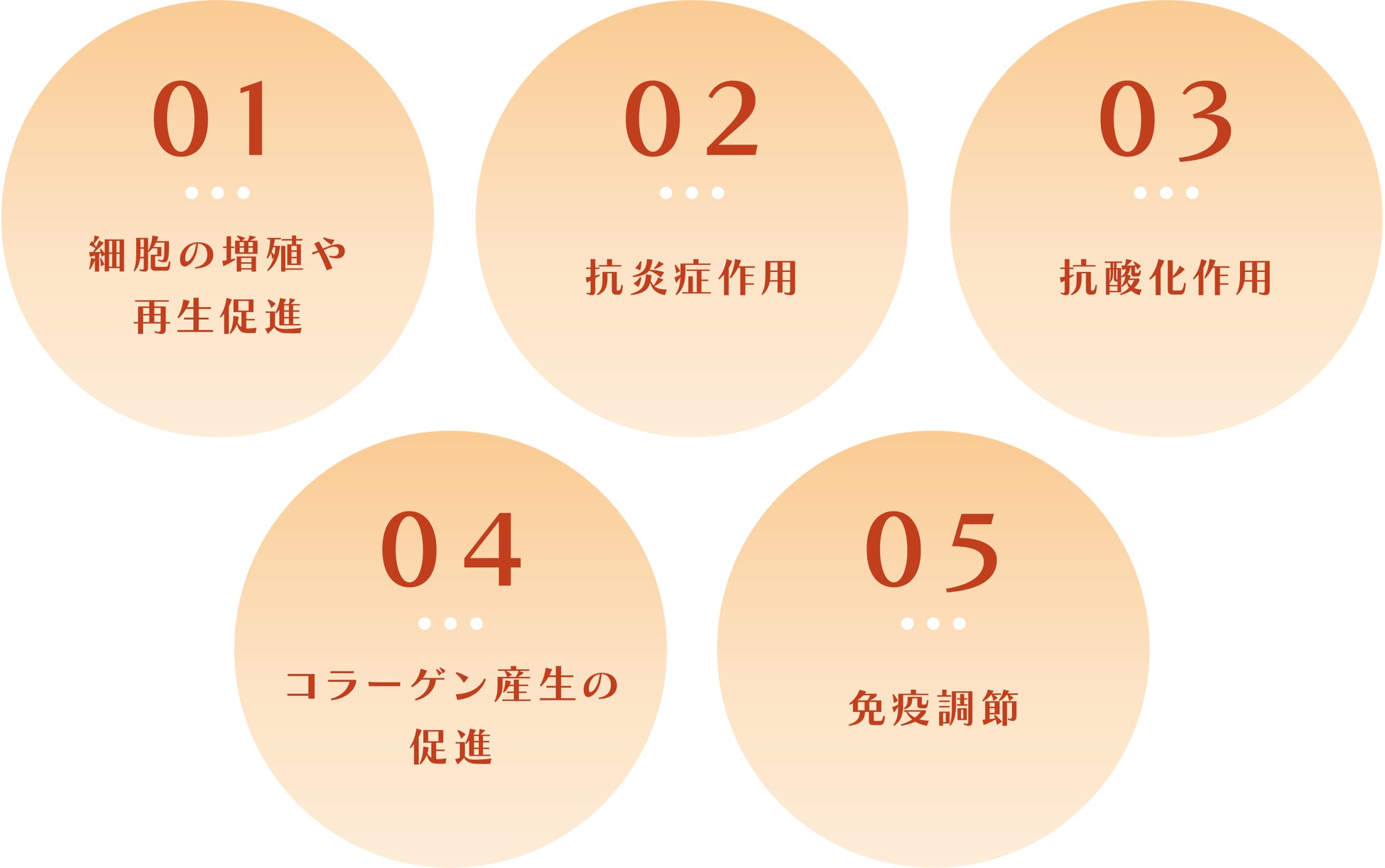 エクソソームを含む修復や抗炎症に関わる有効成分を含有しており、複合的な作用が期待できます。