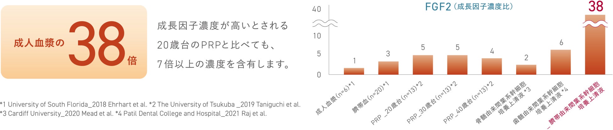 FGF2(成長因子濃度比)は20歳代のPRPと比較しても7倍以上