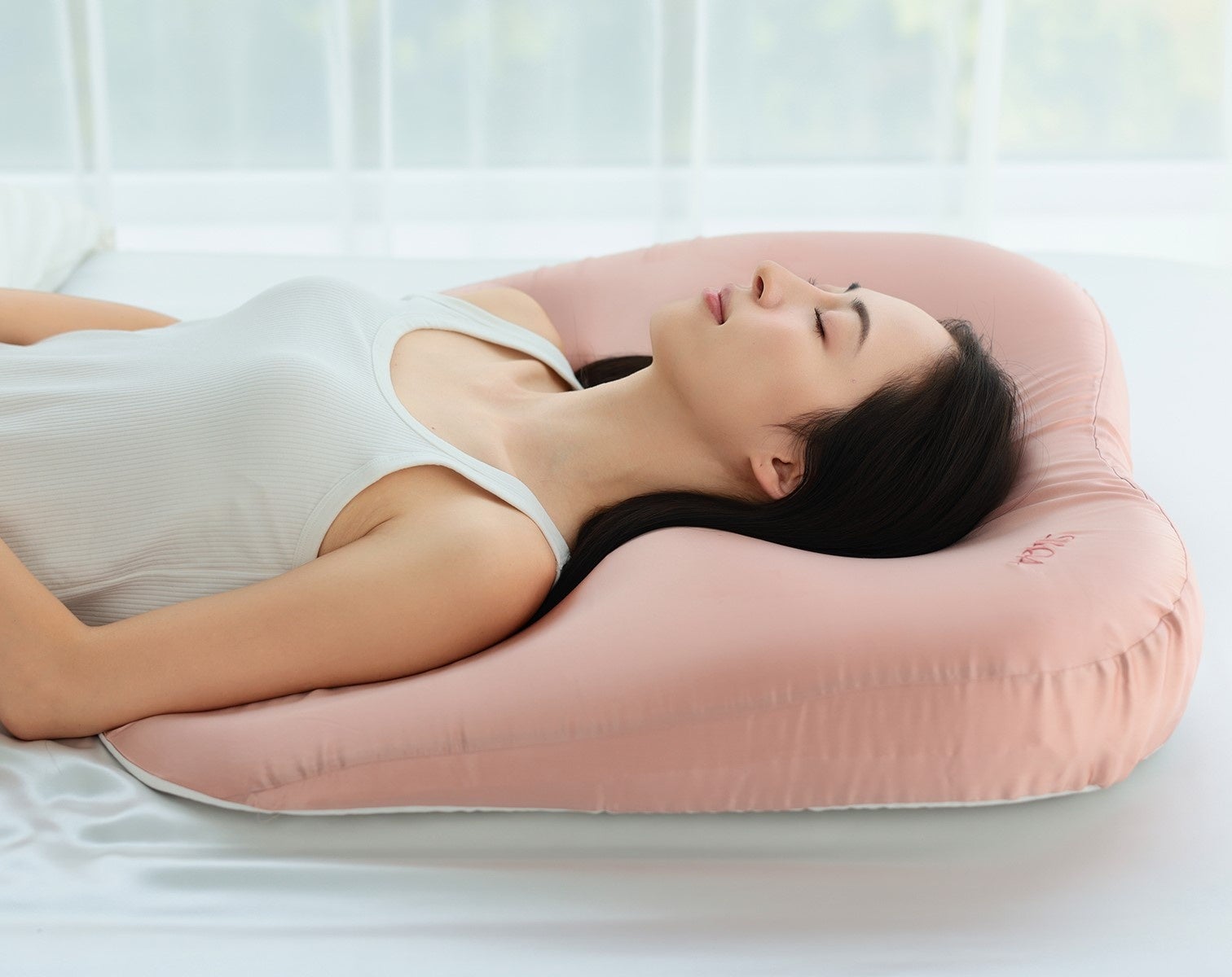 こだわったのは、上半身をまるごとシルクで包み込む「大きさ」と「安定感」。一般的な枕の概念を覆すラージサイズ設計により、寝返りを打ってもシルクから落ちない製品を目指しました。極上のシルクが朝まであなたの髪と素肌を摩擦ダメージから守り続けます。