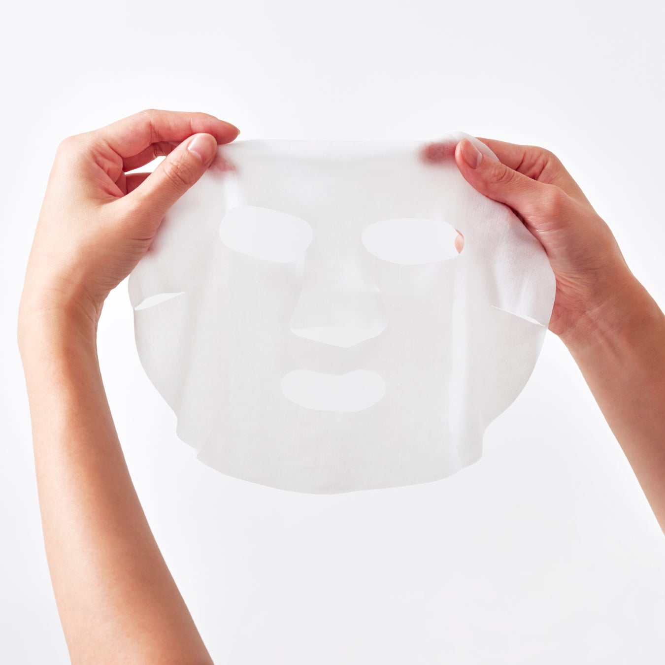 マスクシート素材には、肌にも環境にもやさしく配慮した、植物由来の3層構造の生分解性素材を使用した“貯水型”シートを採用しています。週に一度の集中保湿ケアで、乾燥でごわついたお肌も、うるおいに満ちたしっとりハリ肌に導きます。