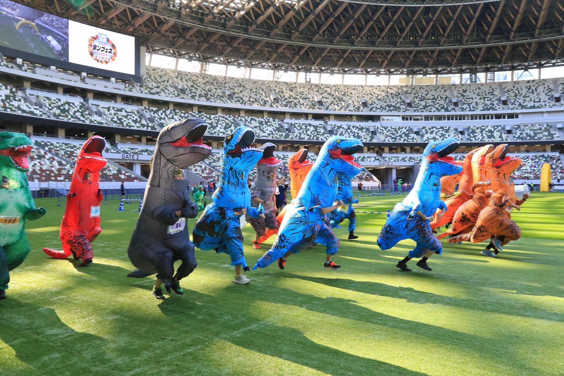 ティラノサウルスの着ぐるみを着て全力で走る姿は、観るだけでも大いに楽しめます。「アジパンダⓇ」ファミリーラン・ファンランの種目では、ティラノサウルスと一緒に走ることもできます。きっとお子様も大喜び!