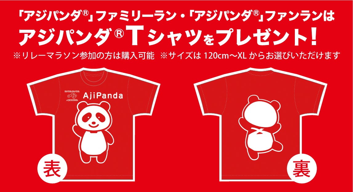 ※「アジパンダⓇ」Tシャツは、リレーマラソン参加の方も1着1,300円(税込)にて購入いただくことが可能です。