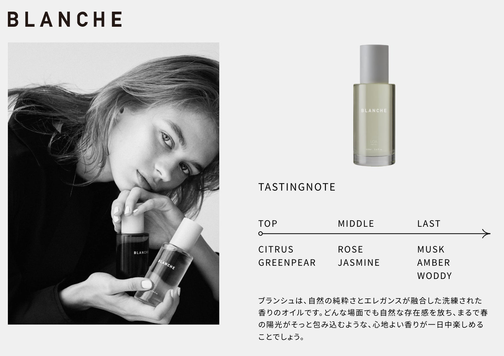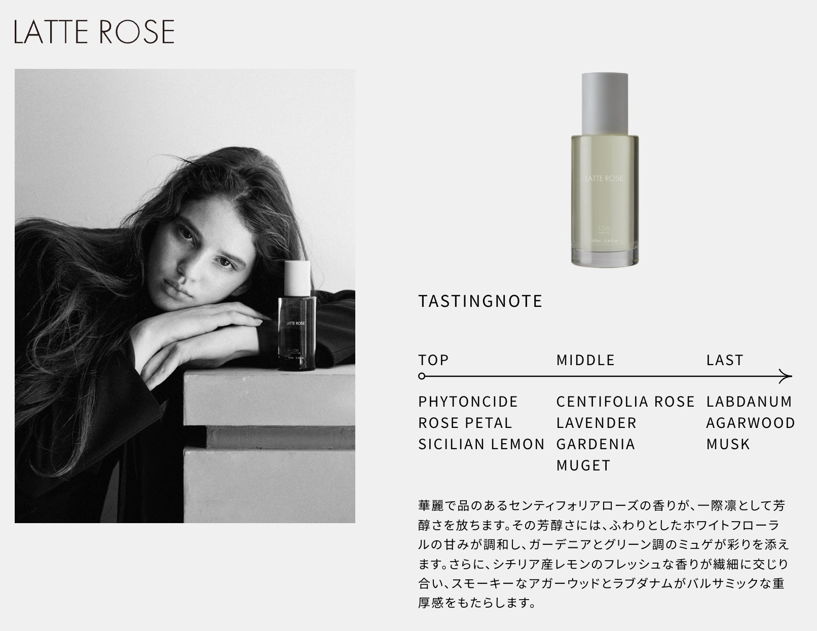 透き通るような存在感と、静けさの中に確かに宿る強さ。その佇まいがLOAの哲学である “Life of Aroma ─ 香りと生きる” に深く共鳴し、新たなブランドストーリーがここから始まります。