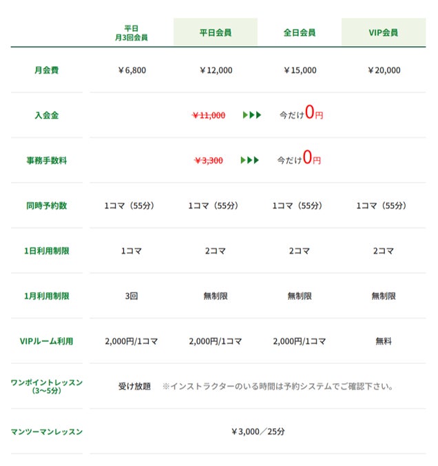 24時間全日ご利用可能。通常レンジ&VIPルーム1コマ(55分)使い放題 ※空きあり連続予約可 |