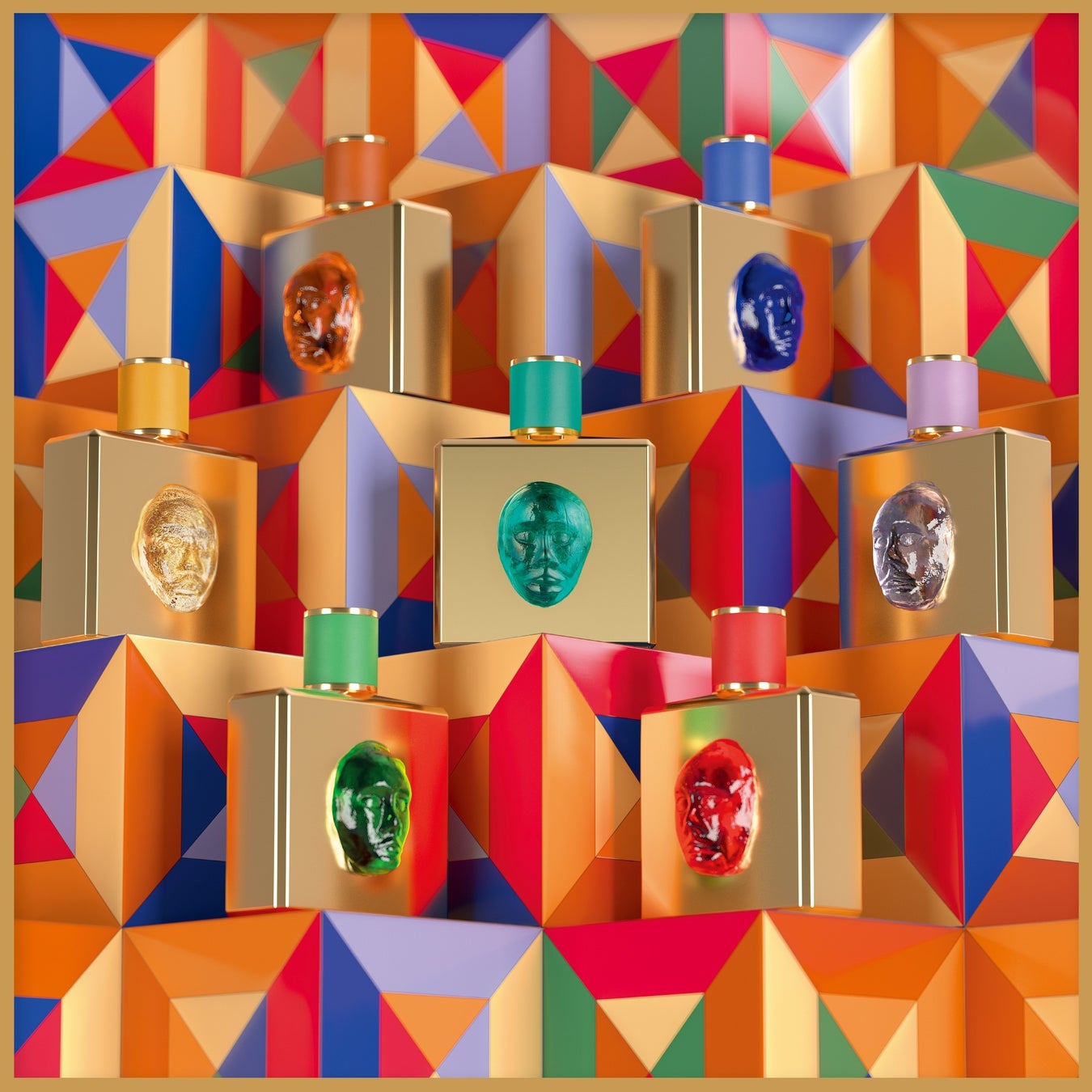 コレクション全体の新たなビジュアルアイデンティティとして、ヴェネツィア装飾芸術の象徴であるサン・マルコ広場のモザイクからインスピレーションを得たデザインを採用。グラフィカルでコントラスト豊かな現代的表現へと再解釈され、他のエクストレ ド パルファンを象徴する色調の断片が調和し、まるでオブジェ群が感情に導かれて集う星座のようなフレスコ画を描き出します。