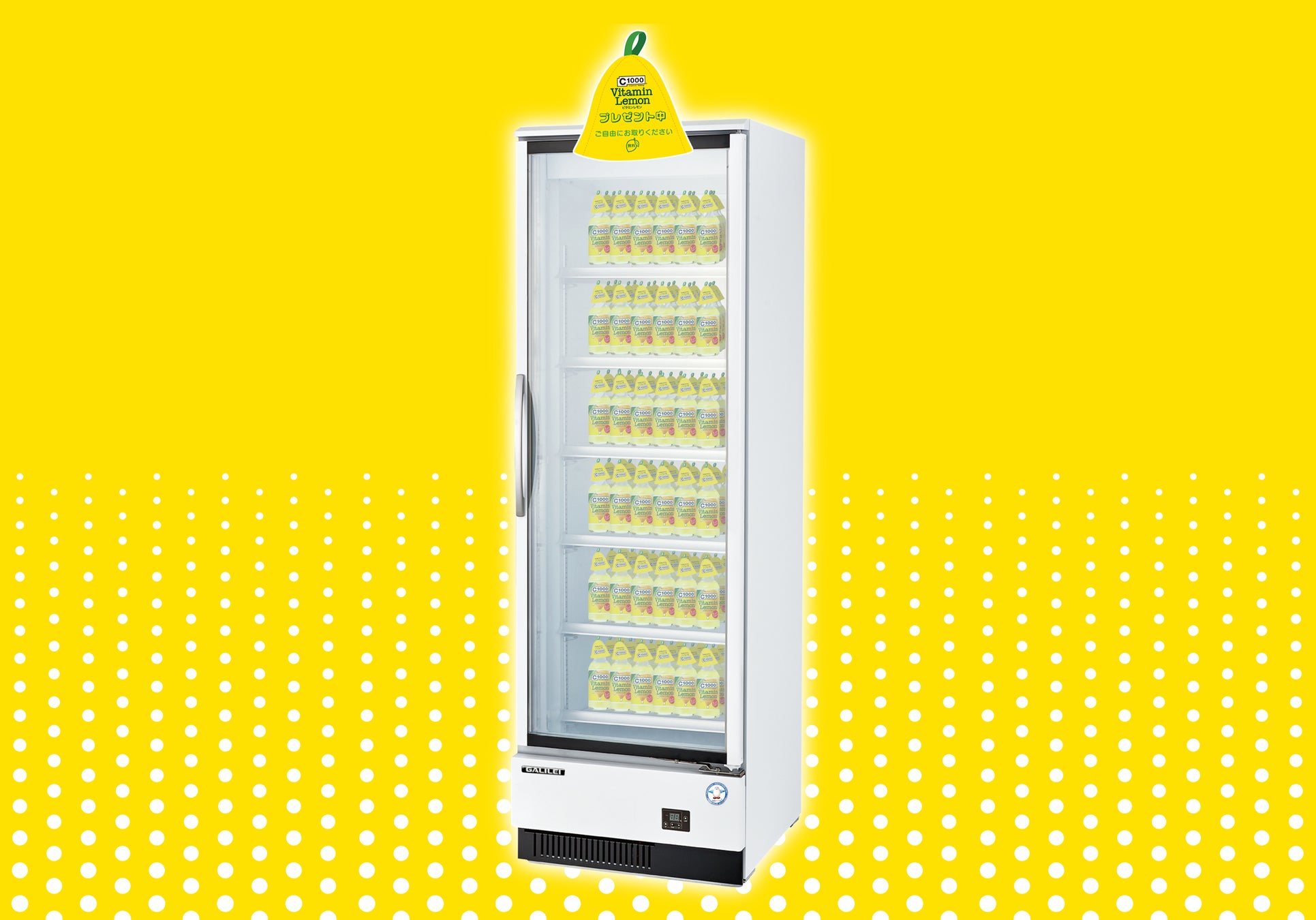 ① キンキンに冷えた「C1000」で乾杯!C1000冷蔵庫を設置し来場者に無料配布