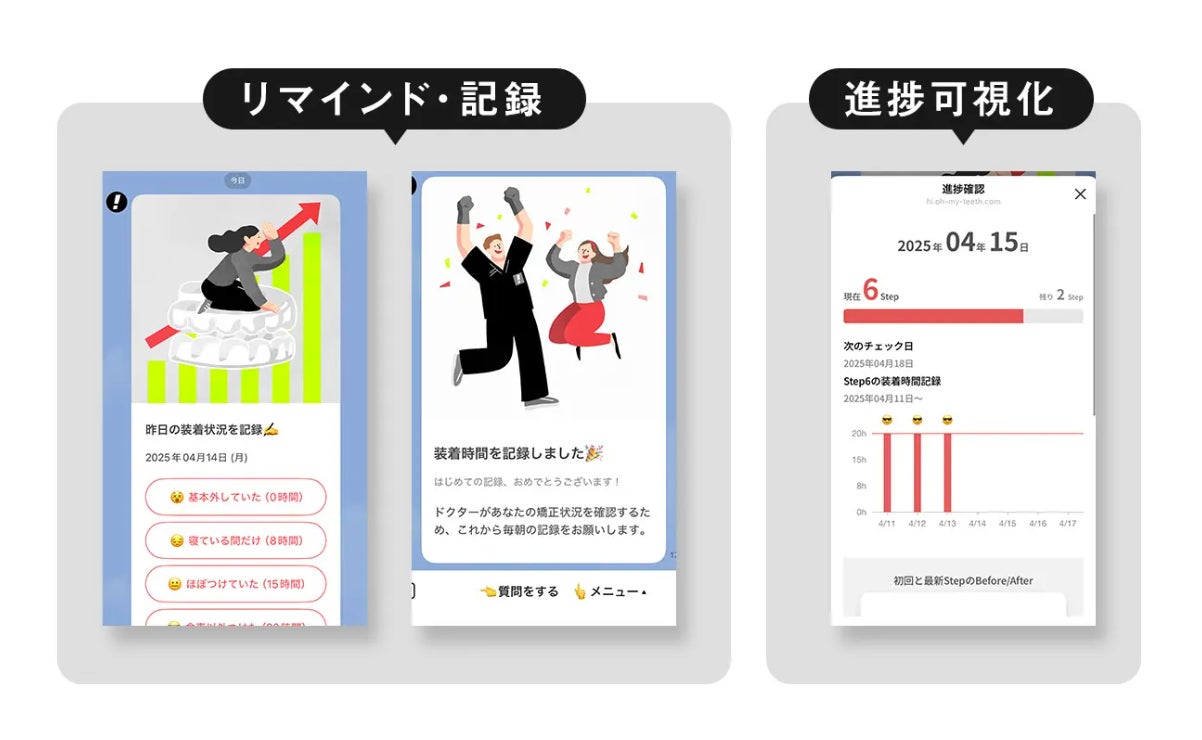 Oh my teethは次の2つの機能によってユーザーのモチベーションを維持し、矯正完走までサポートします。