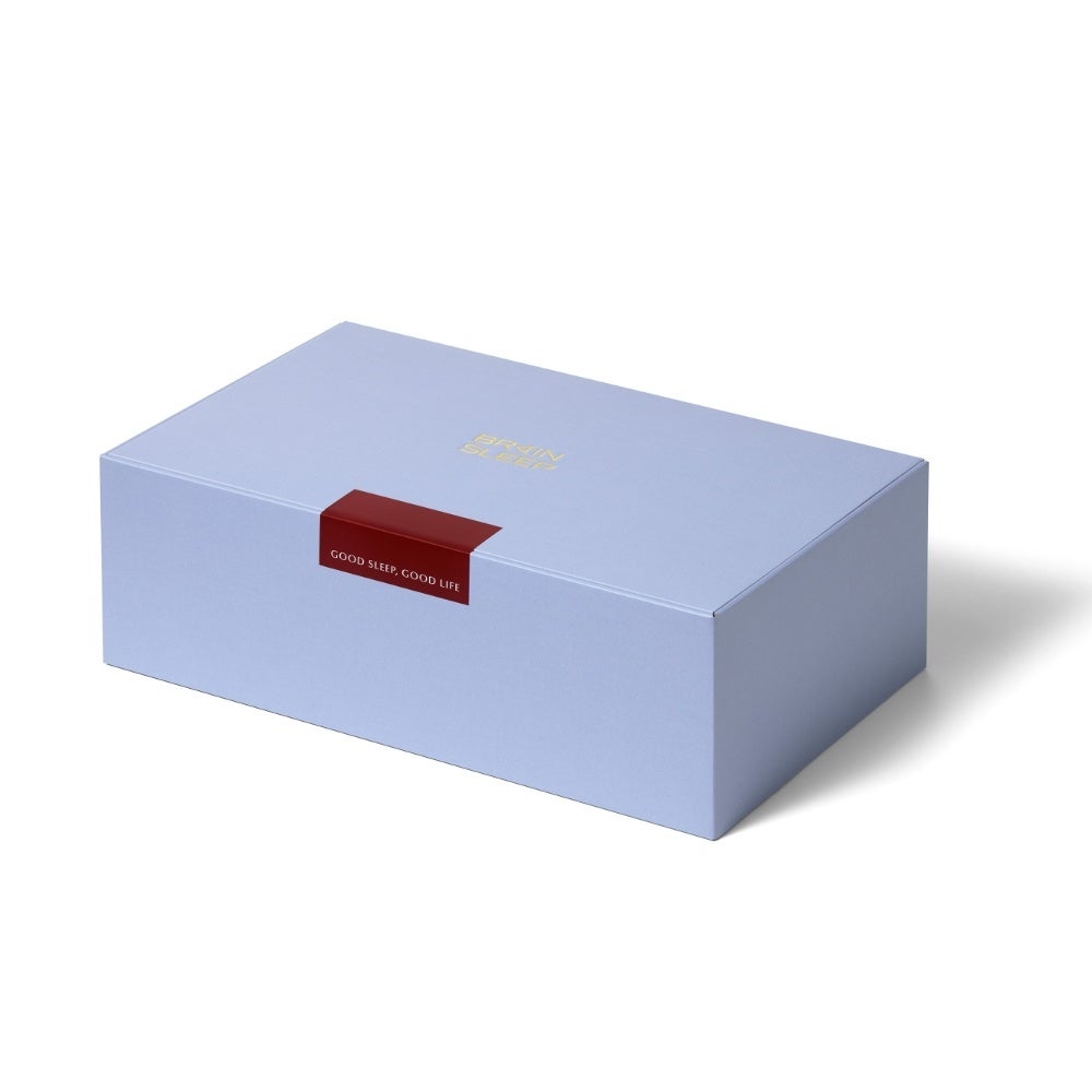 「ブレインスリープ ピロー」シリーズは変更なく、ギフトボックスにてお届けいたします。ブレインスリープ ピロー1個とピローカバーが入る、ちょうど良い大きさのギフトボックスです。外蓋には上品な箔押しのロゴを施し、蓋を開けると “GIFT YOU THE BEST SLEEP” のメッセージ。贈る人の想いが伝わる、特別なデザインに仕上げました。