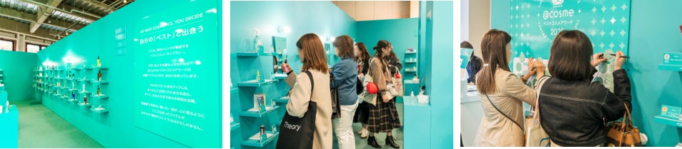 「@cosmeベストコスメアワード2025」の受賞アイテムを、自由に手に取って試せる体験エリア。