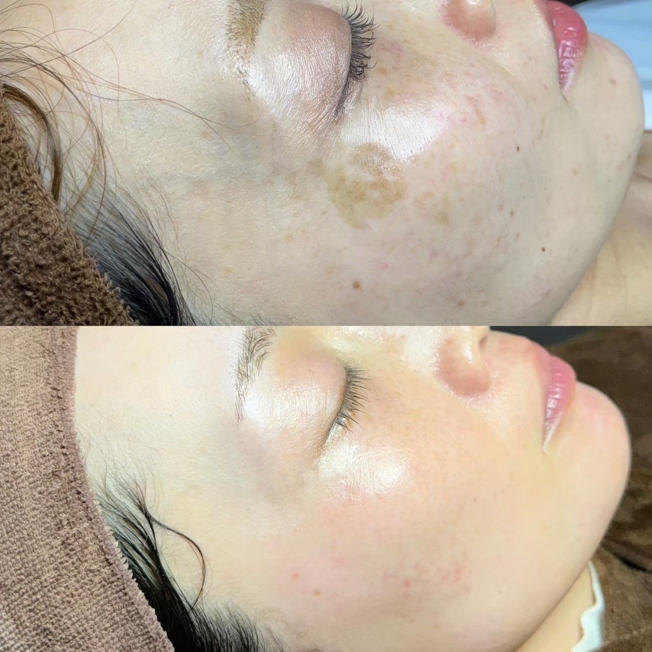 クレンジング→フェイシャルマッサージ→シミケア(30分)→鎮静パック→美白美容液