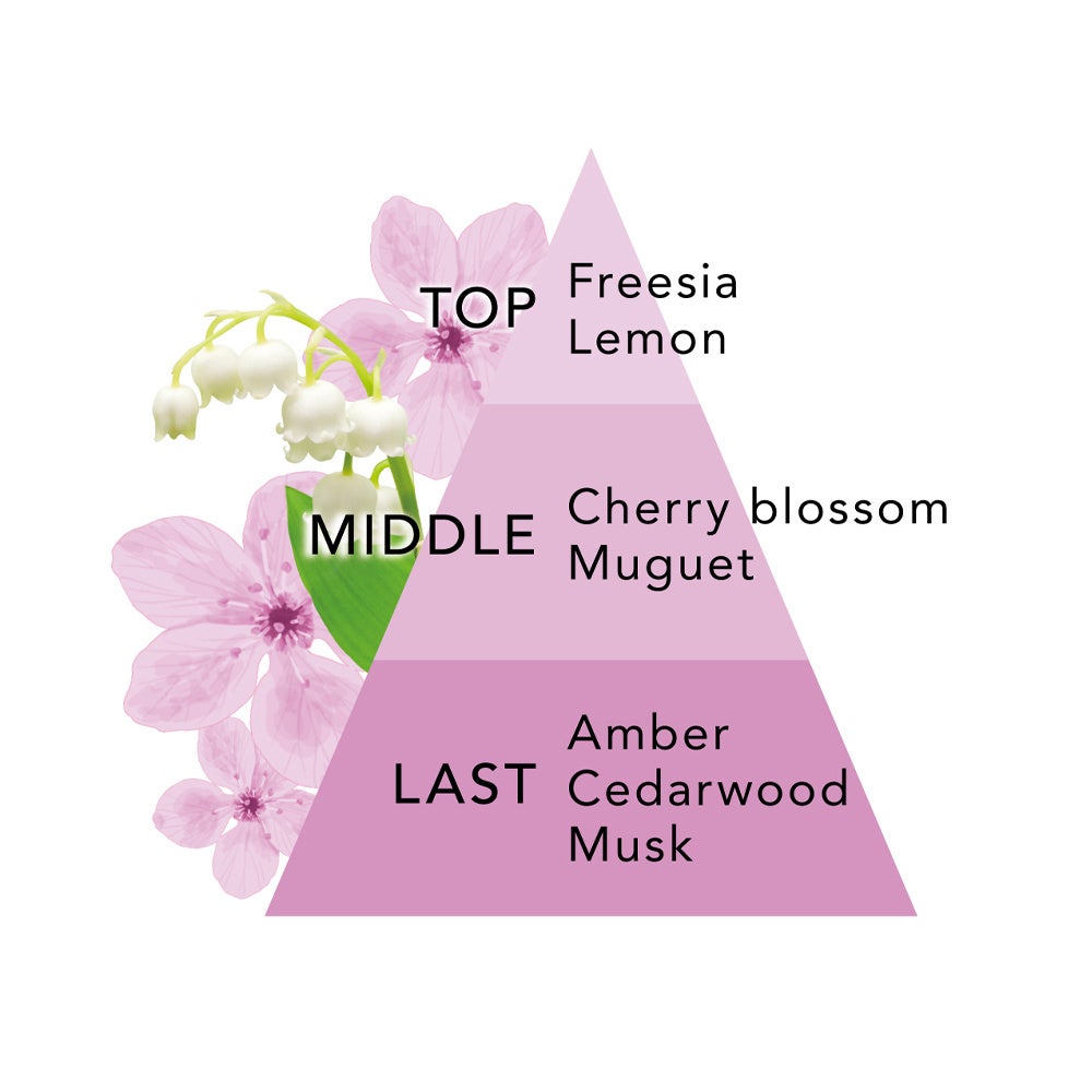 みずみずしいミュゲに、柔らかい甘みのあるサクラを重ね合わせた、シアーで上品な香り。