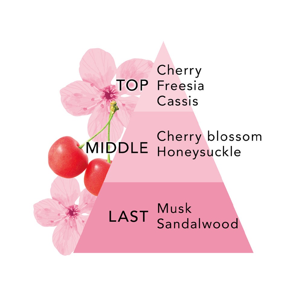 チェリーのグリーンでみずみずしい香りに、パウダリーなサクラを合わせた、キュートで清潔感のある香り。
