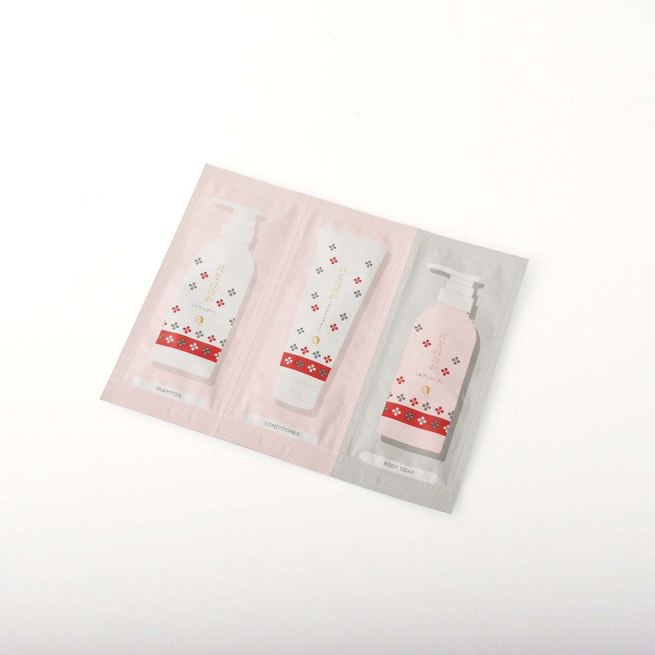会期中、イベント会場にて「よーじや公式アプリ」をインストール&仮登録いただいたお客さまに、「はなほのか」のシャンプー・ヘアコンディショナー・ボディソープのパウチサンプルを各1包プレゼント!