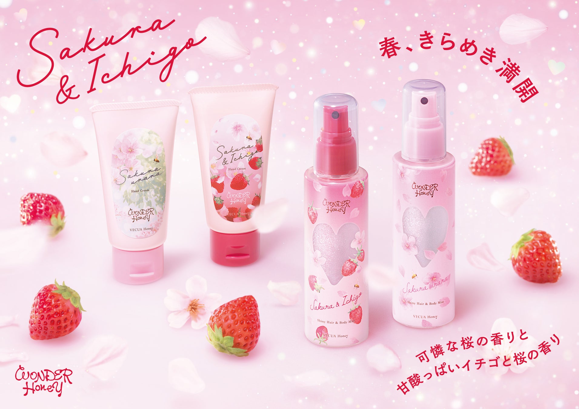 株式会社スタイリングライフ・ホールディングス BCLカンパニー(本社:東京都新宿区、カンパニーエグゼクティブプレジデント:大村和重)は、蜂蜜を使ったコスメブランド『VECUA Honey』のワンダーハニーシリーズより、『きらめきヘア&ボディフレグランスミスト サクラウララ』と『きらめきヘア&ボディフレグランスミスト 野イチゴサクラ』を2025年12月2日(火)より数量限定で発売いたします。