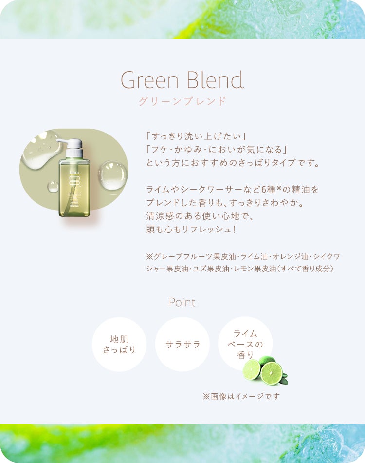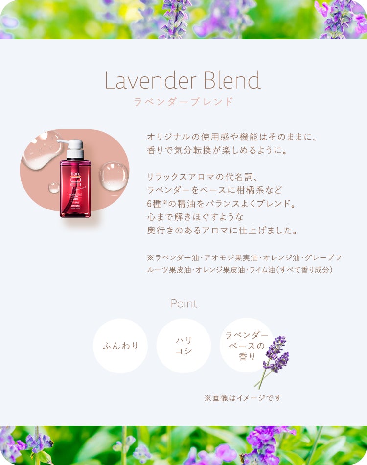 “香りで選べる”と好評の「kurokamiスカルプ(haruシャンプー)」の3種類をセットにしてお届けします。