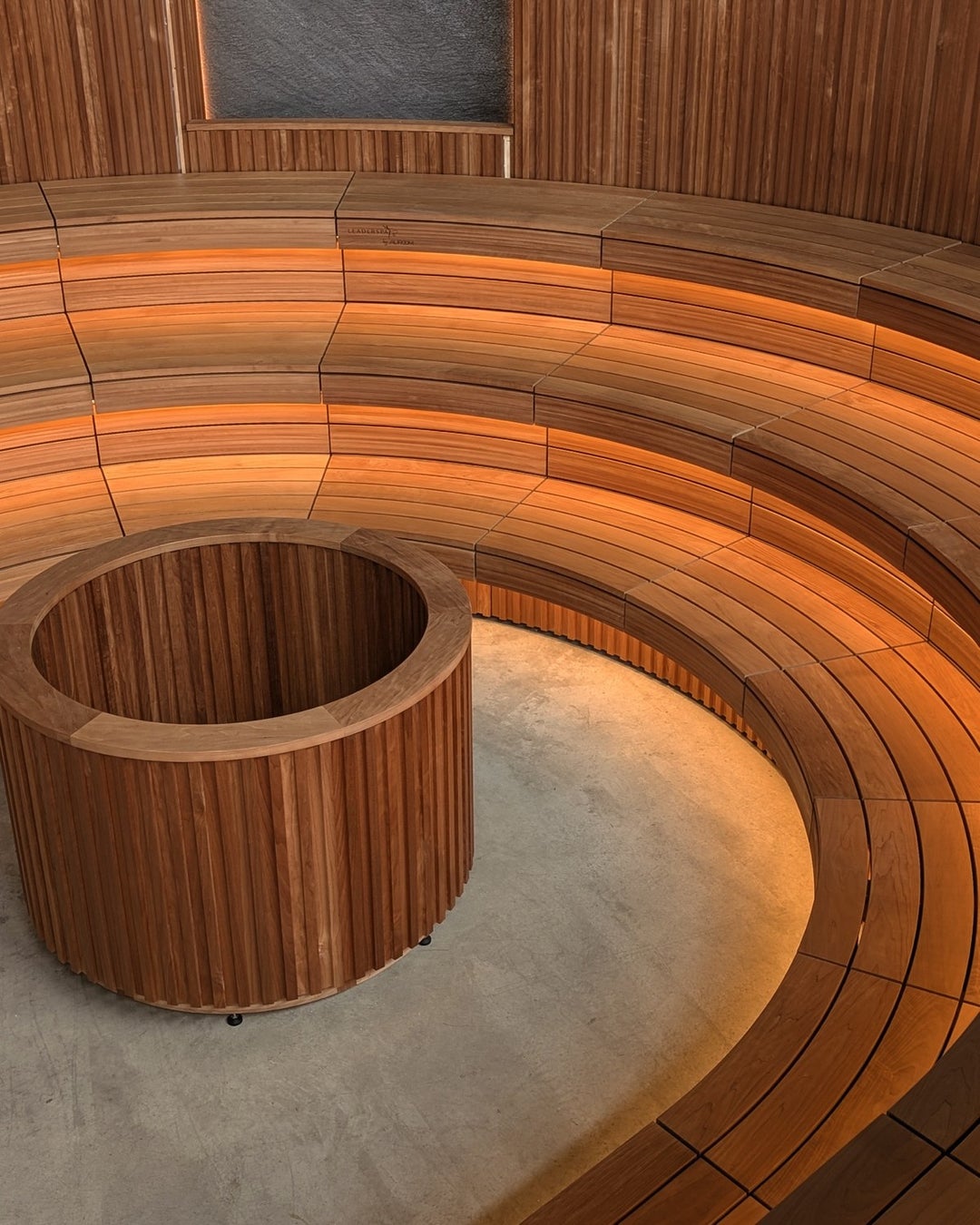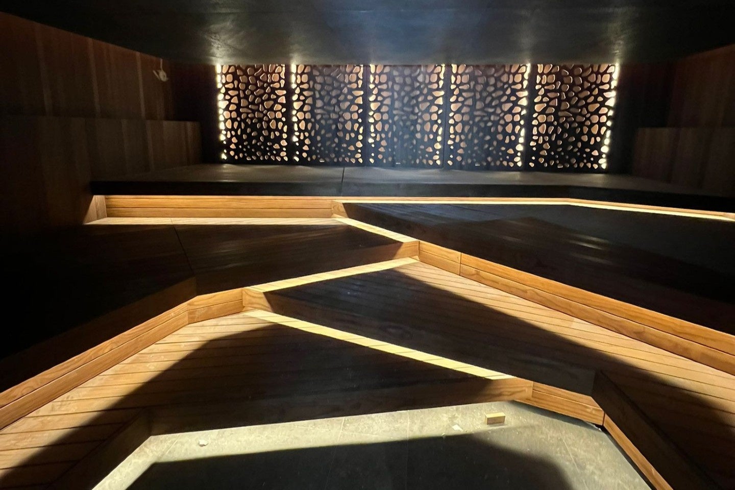 サウナ室のサイズや内装デザインに始まり、木材の樹種や色、表面加工やカット技法といった細部に至るまで柔軟にカスタマイズできるため、建築計画のコンセプトに合わせた設計を実現することが可能です。