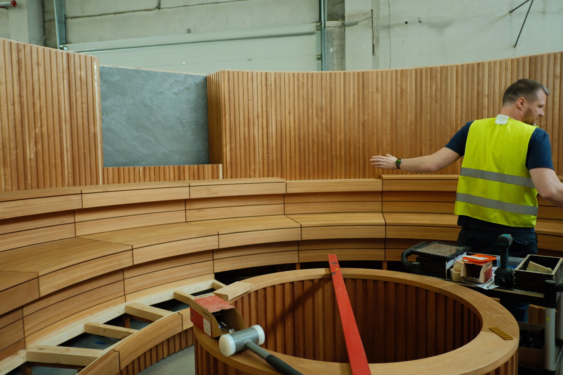 totonoüのオーダーメイドサウナではモジュール式のパネル工法を採用。これにより、従来は数週間程度かかることが多かった工事を数日で完了させることが可能となりました。