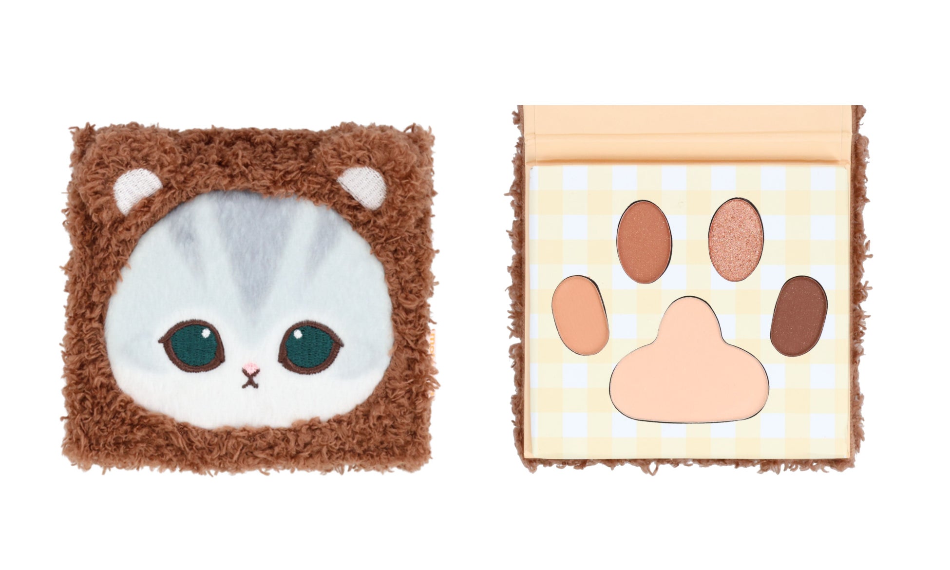新商品は人気キャラクター『mofusand』をモチーフにした「コスメ&雑貨シリーズ」です。ラインナップはコスメが2種類と雑貨が3種類の全5アイテム。それぞれ「うさにゃん」と「くまにゃん」のデザインがあります。全5色の「アイシャドウバレット」は、肌になじむようにふわっと色づくニュアンスカラーで、異なる質感が揃っています。「缶マルチカラー」は、体温でじんわりとろけてフィットし、血色感とツヤをプラスするマルチカラーバームです。雑貨は「マスコット前髪クリップ」「フェイスミラー」「ファイスポーチ」の3種類。どれも『mofusand』のかわいさが詰まった、持っているだけで気分が上がるアイテムです。