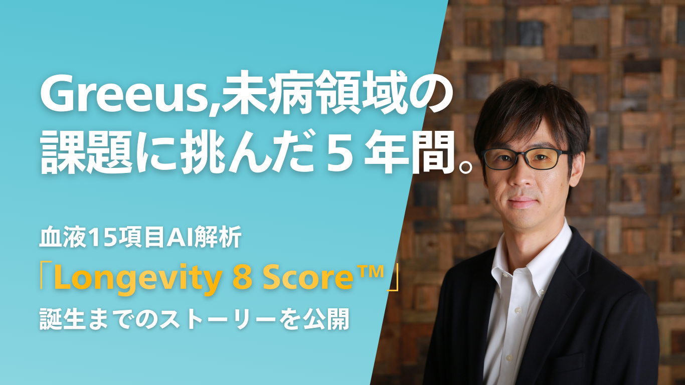 Greeus(グリース)は2025年8月、血液15項目をAIで解析する 「Longevity 7 Score™」 を開発しました。