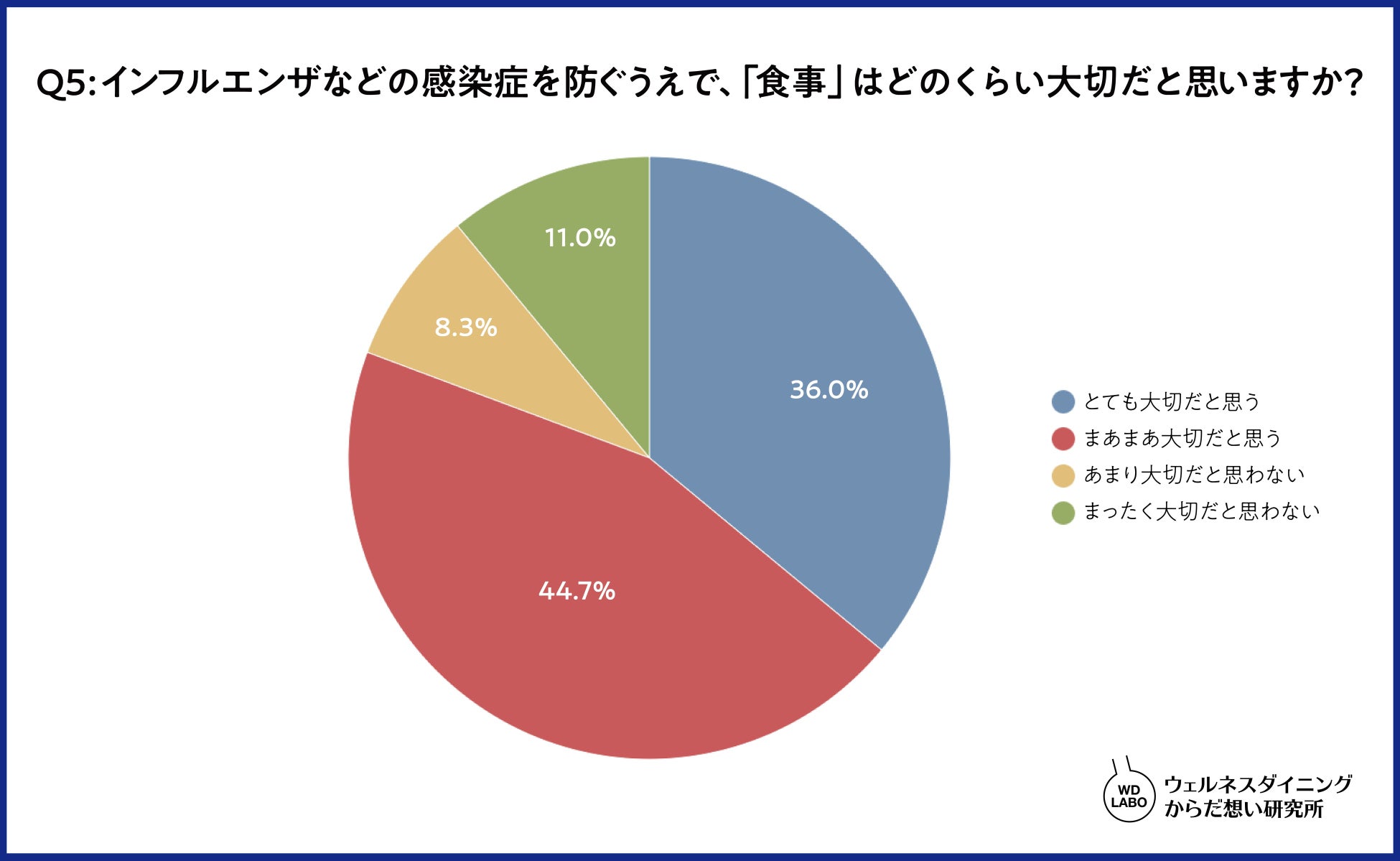 Q5:インフルエンザなどの感染症を防ぐうえで、「食事」はどのくらい大切だと思いますか?