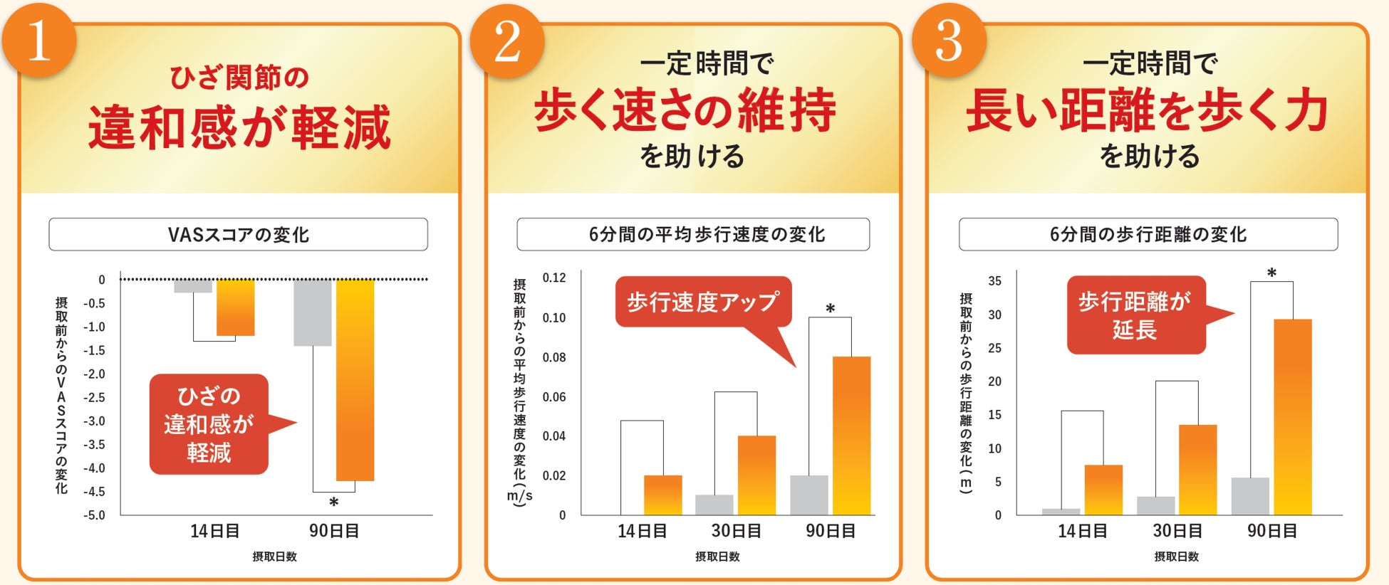◆研究レビューで評価!ひざや歩行を支える3つの機能