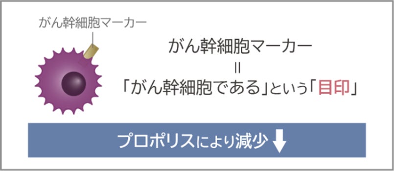 大腸がん細胞株由来のがん幹細胞に、プロポリスを添加した結果、プロポリスを添加していない条件と比べてがん幹細胞マーカーが有意に減少した。このことから、プロポリスはがん幹細胞の数を減少させる可能性が示された。