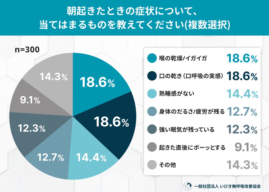 • 起床時の不調は、「喉の乾燥・イガイガ」「口の乾き」が18.6%と突出