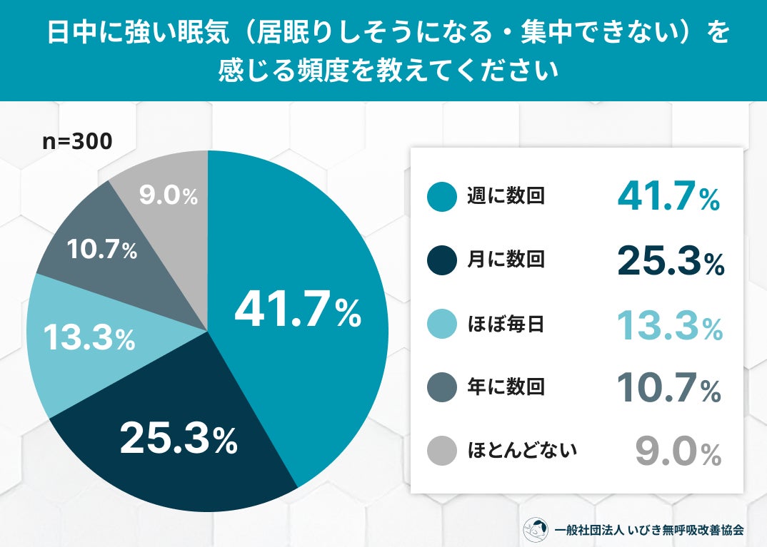 • 日中に強い眠気を感じる頻度は、「週に数回」が最多(41.7%)