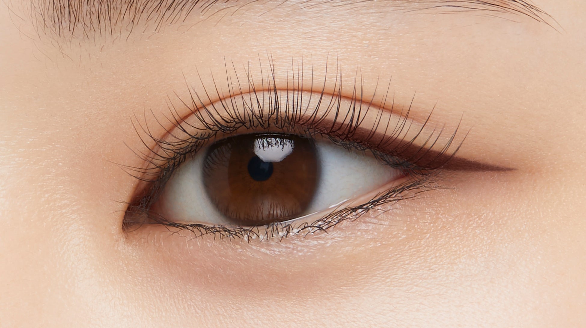 血色感のある赤みを忍ばせた「チェリーブラック」のリキッドライナーで目もとを引き締めれば、やさしい印象で、自然に目もとを大きく見せます。