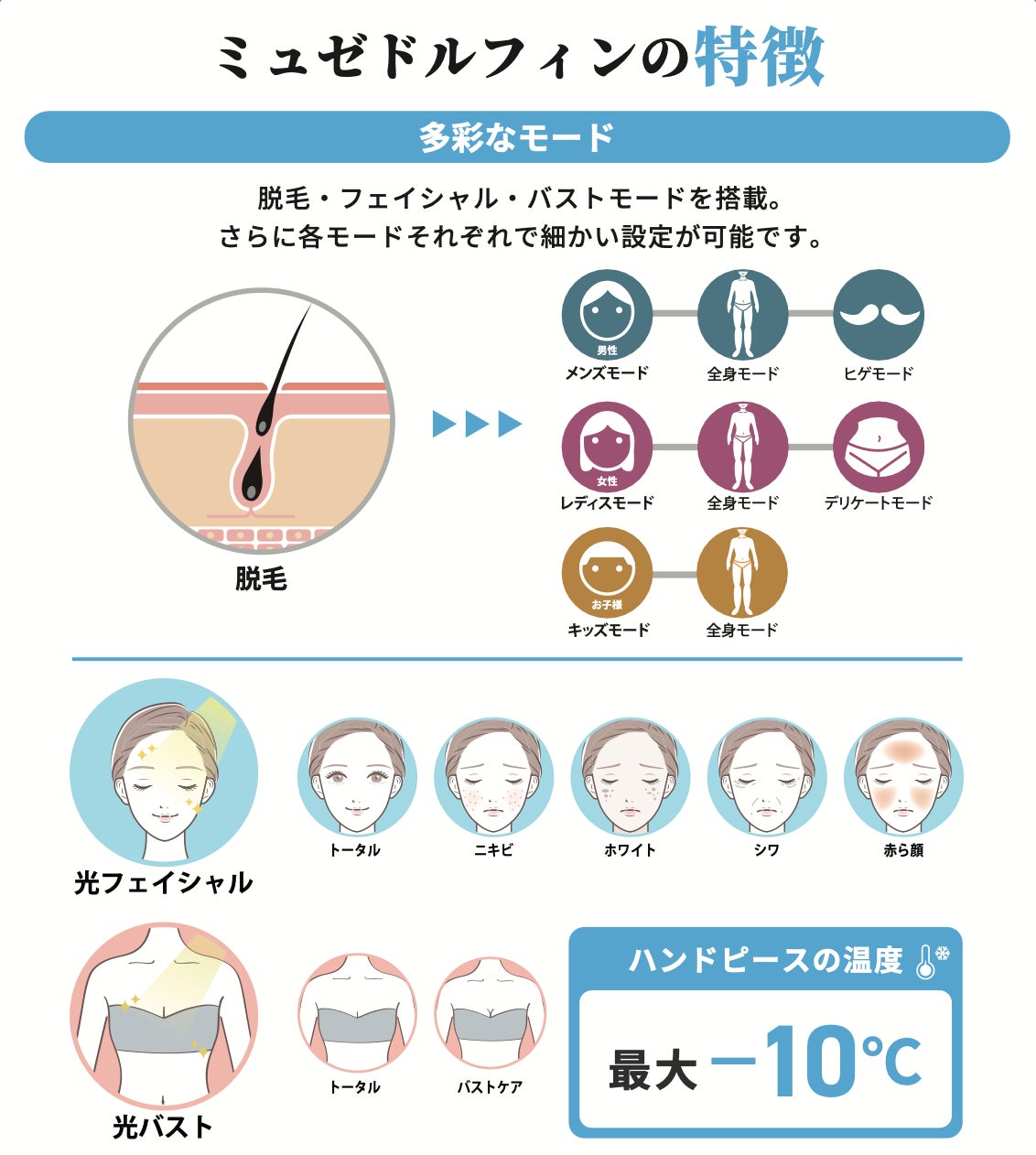 ミュゼドルフィンは1台で複数の美容ニーズに対応します。