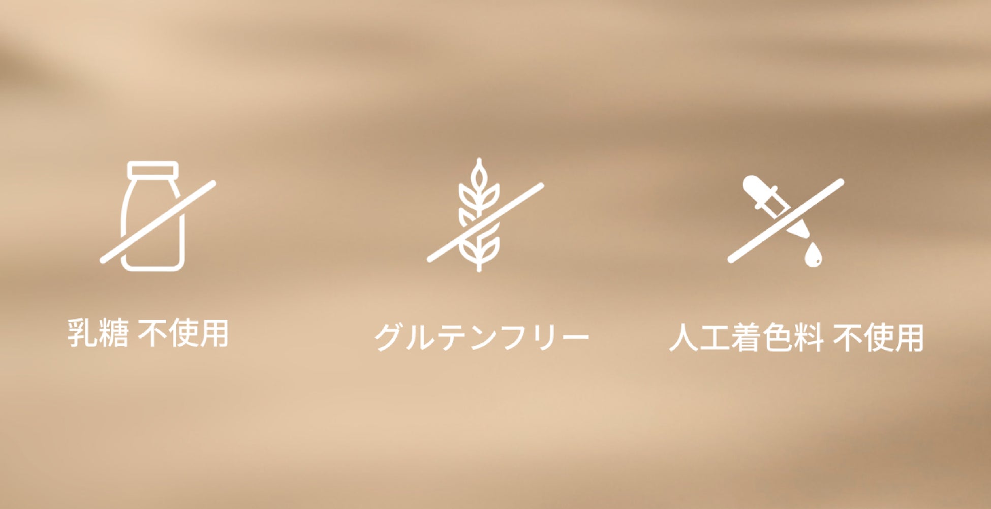 コラーゲンペプチドやヒアルロン酸といった栄養素は、「美しさを支えるアプローチ」として、研究の中でもその可能性が示唆されています。なかでもコラーゲンペプチドはハリ感の印象づくりに、ヒアルロン酸はうるおいを意識した美容習慣の一部として取り入れられることが多い成分として知られています。また、グルテン・乳糖・人工着色料を使用せず、EUの厳しい基準に準拠したアレルゲンフリー設計。遺伝子工学にも頼らず、安心して続けられる品質でつくられています。