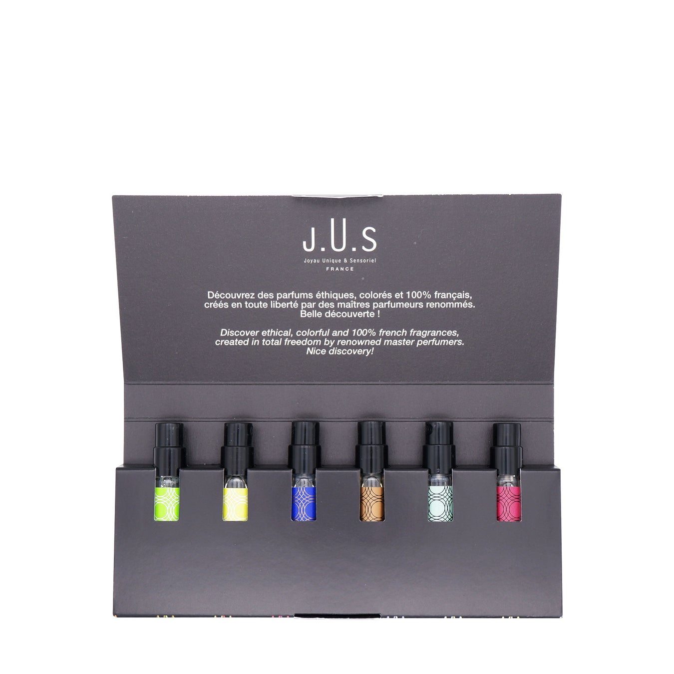 香水界を知り尽くした達人たちが、秘密主義に背を向け、香水をポップに解体する。フランスの反骨ブランドMaison J.U.Sの精鋭作だけを詰め込んだ鮮烈なサンプルボックス。伝統を脱構築し、嗅覚に自由を。