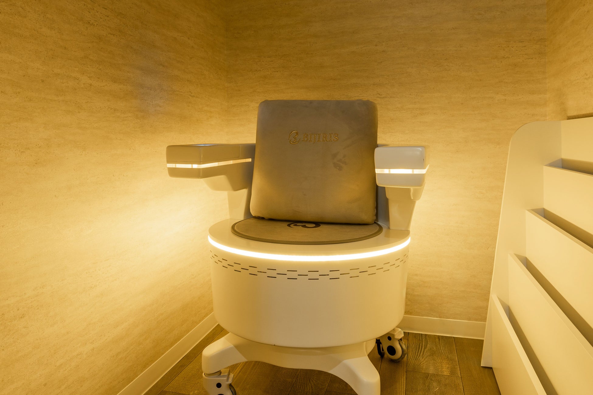服を着たまま座るだけで「筋肉+脂肪」両方にアプローチできます。なかなか鍛えることのできない骨盤底筋や下半身を電磁パルスの刺激で座るだけで鍛えることができる美容マシンです。