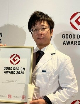 「by365」のデビューアイテムである「パウダリーUVクリーム」の開発者は、今から7年前に育休を取得した男性研究員。当社は2024年度の男性の育休取得率は6割で全員が3か月以上の取得ですが、当時は社内での男性社員の取得としては3例目で、研究開発部門では初めての取得でした。育休取得時の子どものおむつ替えの時に気づいた吸水ポリマーの力に着目し、化粧品に使用できる吸水ポリマーから開発を行った独自のテクスチャーです。開発を行った研究開発部の河内佑介は、この日焼け止めのテクスチャーで2025年度のグッドデザイン賞をデザイナーとして受賞。今回の「パウダリーUVジェル」についても開発を担当しました。