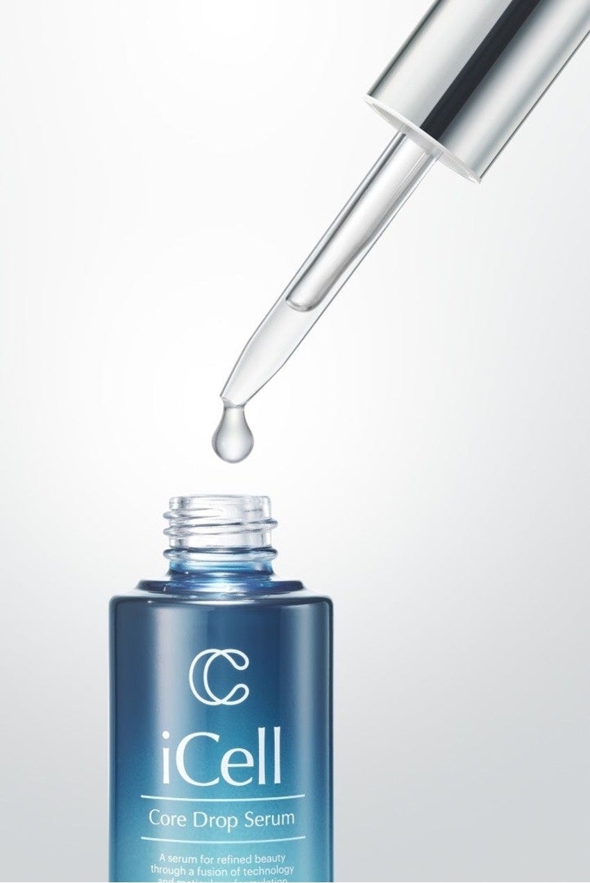 第一弾製品「iCell コアドロップセラム」は、セルソース再生医療センターが研究・提供する高純度エクソソームである”ハイグレードエクソソーム”を10%も高濃度配合することで、肌の奥深く*までしっかり浸透、肌の核を活性化させ、ハリ感や、ツヤ感のある肌になるためのサポートを行います。また、肌悩みランキングでも上位になりやすい“たるみ、毛穴、肌荒れ、くすみ、シミ、シワ”といったお悩みに包括的にアプローチするため、美容皮膚科医の処方監修を通じて次世代型レチノールであるグラナクティブレチノールをはじめに、トリリオンペプチドやクアトロビタミンなど各成分を厳選し処方設計していることで、肌レーダーチャートの満点を取るように、隙のないバランスの取れたお肌に導きます。