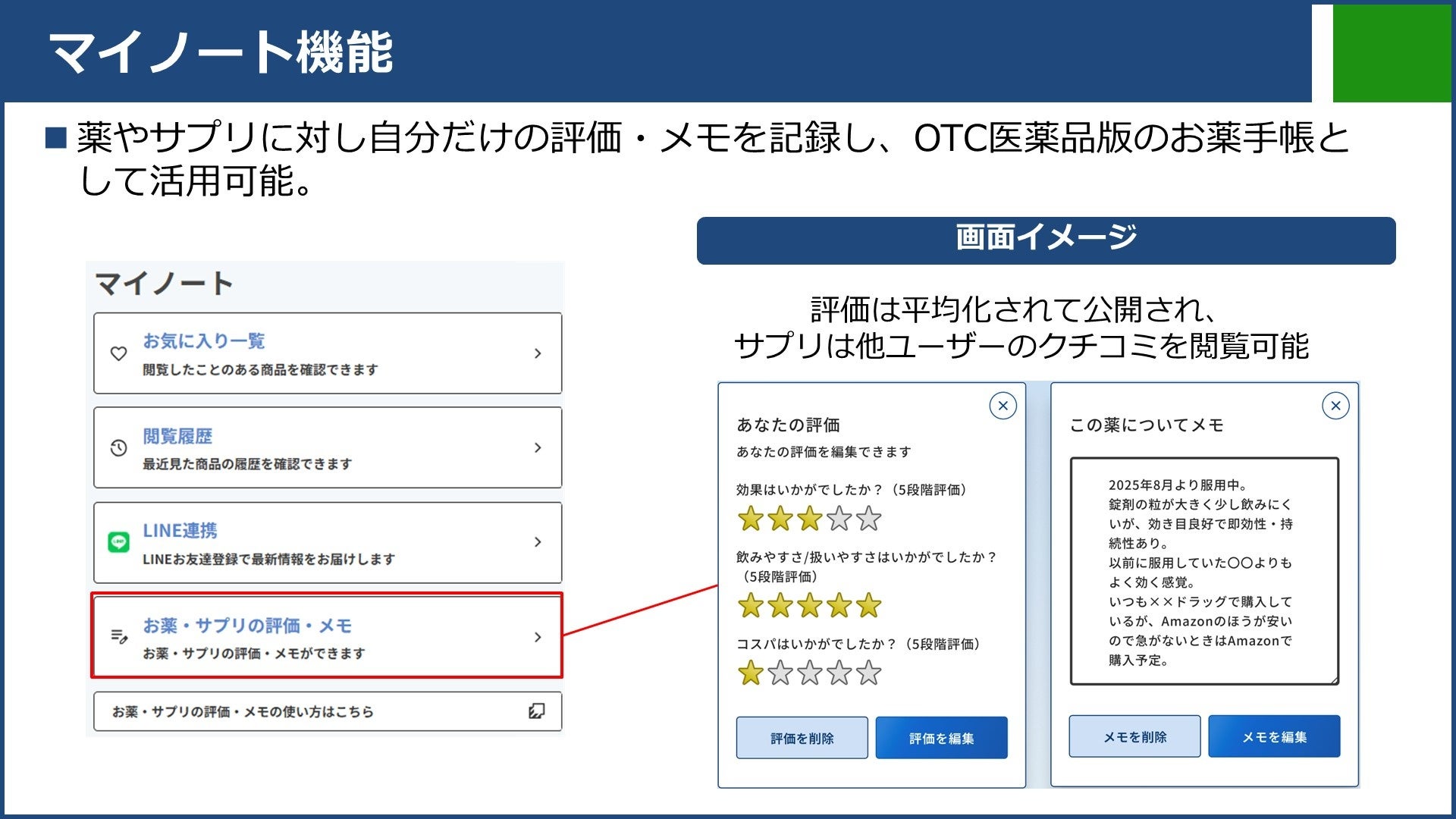 こうした声に応えるべく、商品の選定から購入、そして記録までをシームレスに繋ぐ機能拡充を行いました。これにより、ユーザーは迷うことなく、より納得感を持ってセルフメディケーションを実践できるようになります。