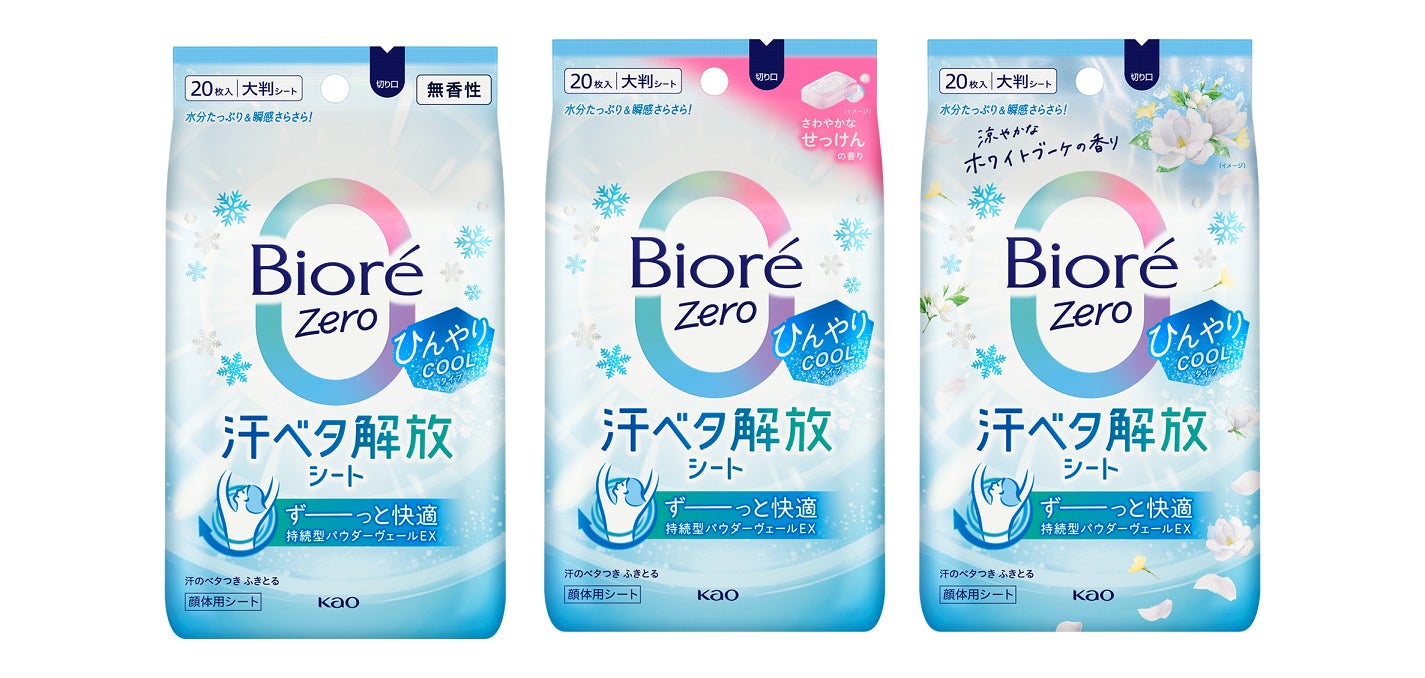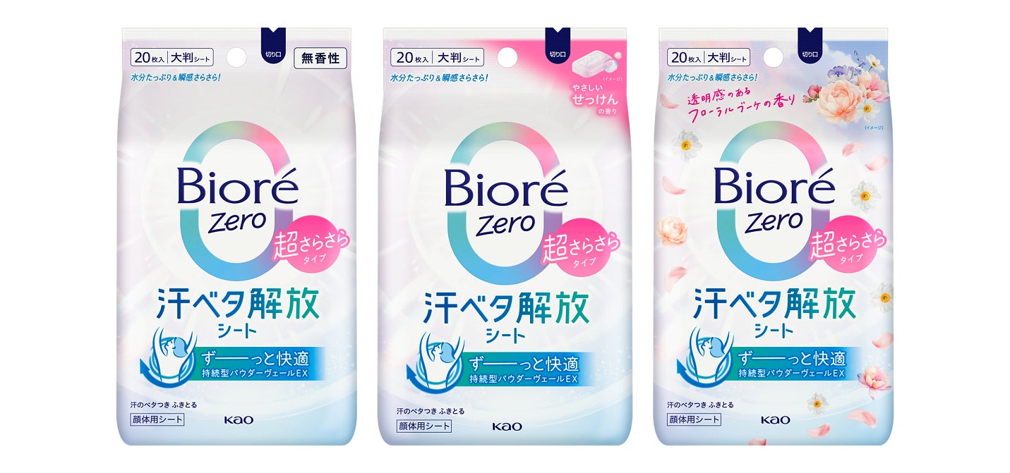 「ビオレZero」は、近年の気候変動がもたらす高温多湿な環境による、生活者の抱える湿度・温度ストレス*1に着目し、2024年3月に誕生しました。主力アイテムである『ビオレZero シート』は、汗を乾かし続けることで長時間快適な状態が持続する価値提案で、累計出荷数量1,400万個*2を突破。ご使用いただいた方からは、「さらさら感が続くから、服が肌にはりつかずにうれしい」「使った後は、肌がベタつかずに快適」など、多くの好評の声をいただいております。“快適さを肌の上にまとう”アウタースキン発想に基づく「ビオレ」のプロテクション提案が、多くのお客さまから高い支持をいただき、汗ふきシート市場で売上No.1*3を獲得しています。