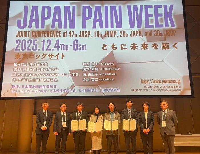 2025年12月4日・5日に東京ビッグサイトで開催された疼痛関連学会合同カンファレンス「JAPAN PAIN WEEK(第47回日本疼痛学会、第18回日本運動器疼痛学会、第29回日本ペインリハビリテーション学会、第30回日本口腔顔面痛学会)」にて、当社スタッフを含む研究チームを代表し、当社取締役の肩 祥平が登壇いたしました。