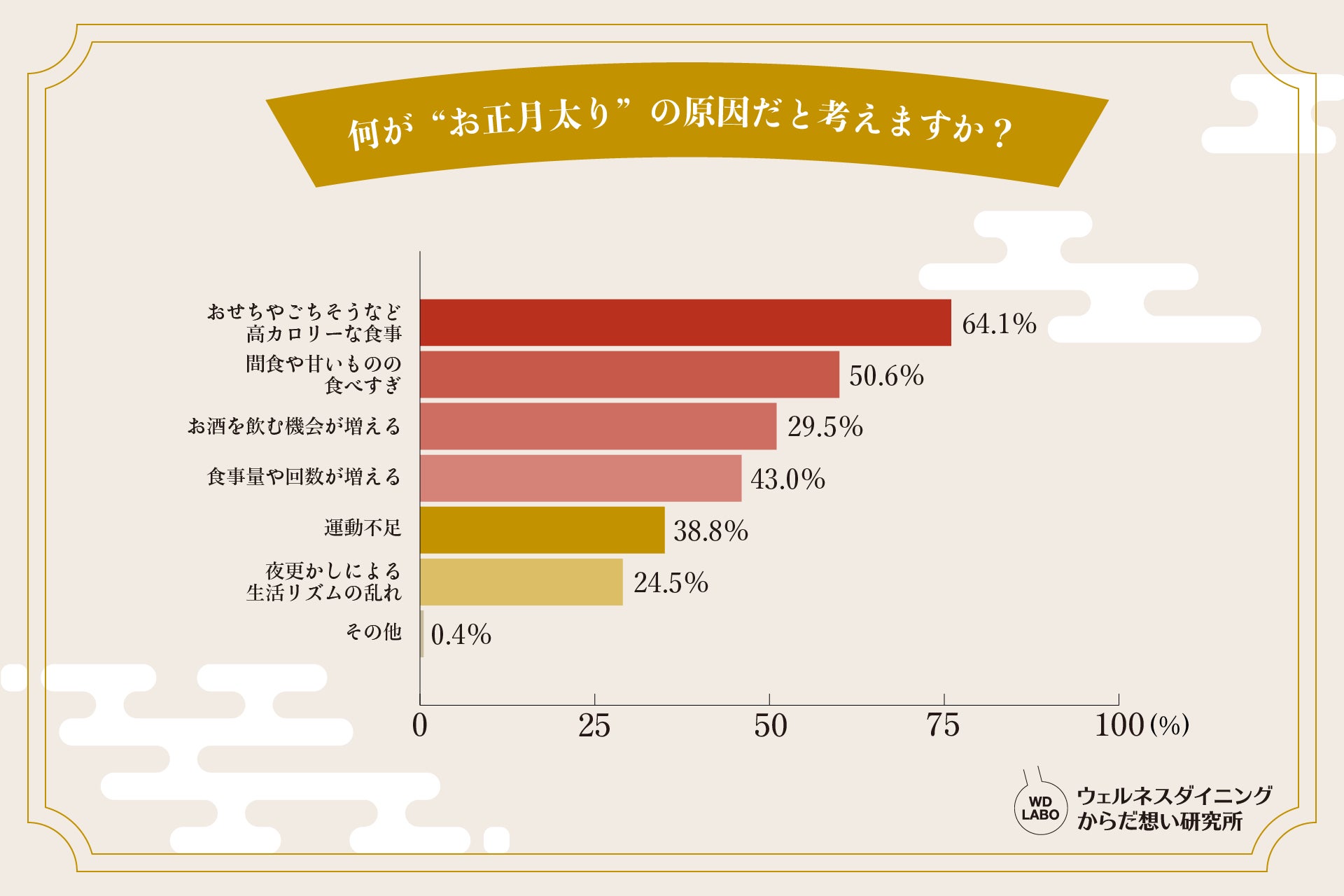 ✓ 原因の1位は「おせちやごちそうなど高カロリーな食事」(64.1%)