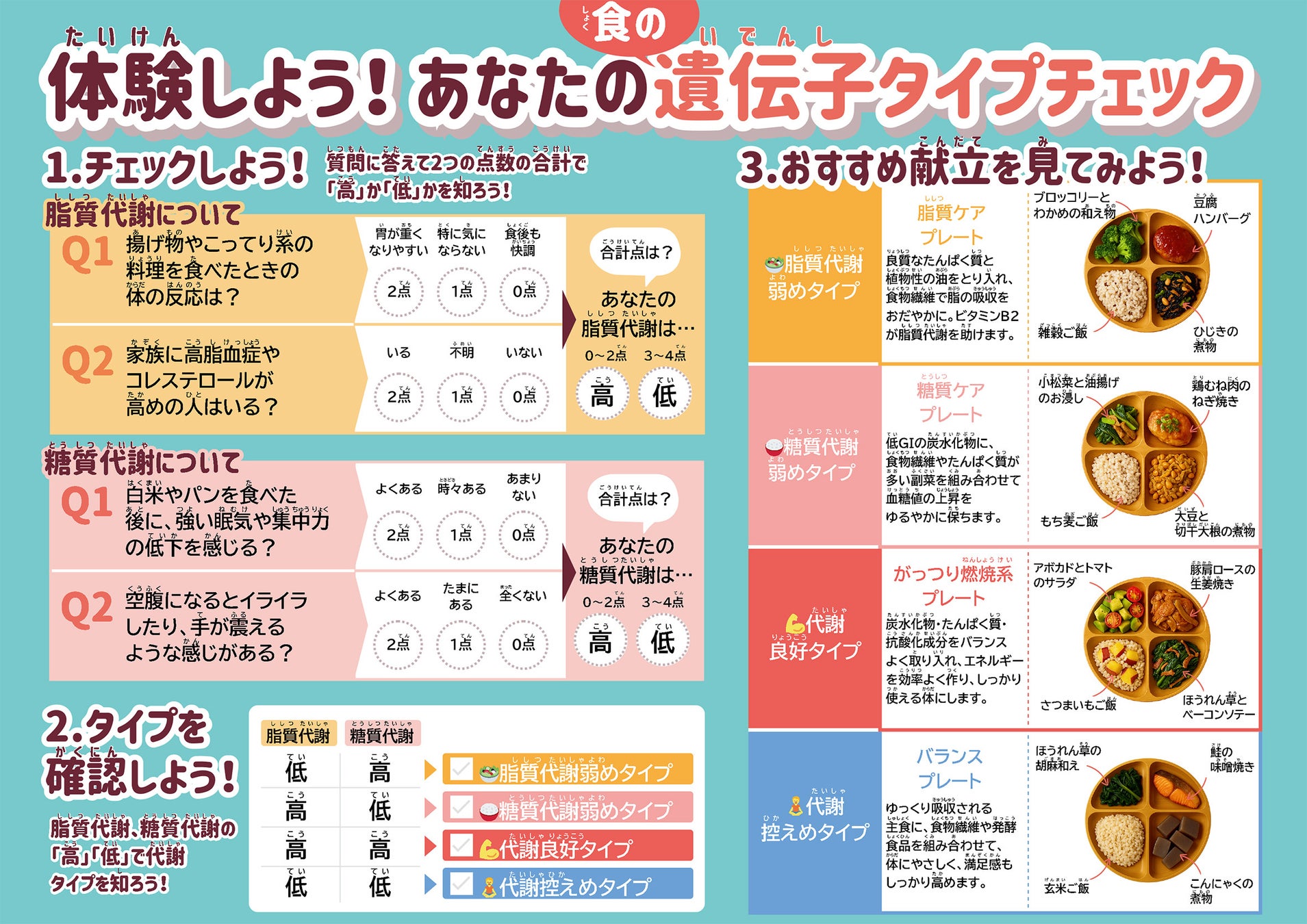 「遺伝子レストラン」は、参加者の糖質代謝・脂質代謝に関連する遺伝子をもとに、体質にぴったりな食事を提供する未来のレストランをイメージしたイベントです。
