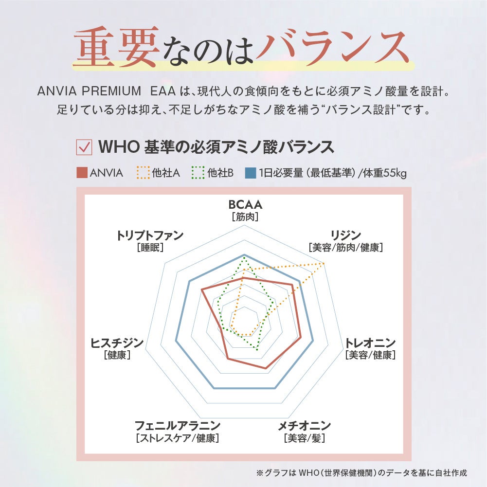 ANVIA PREMIUM EAAは、WHOの推奨比率データをもとに、
